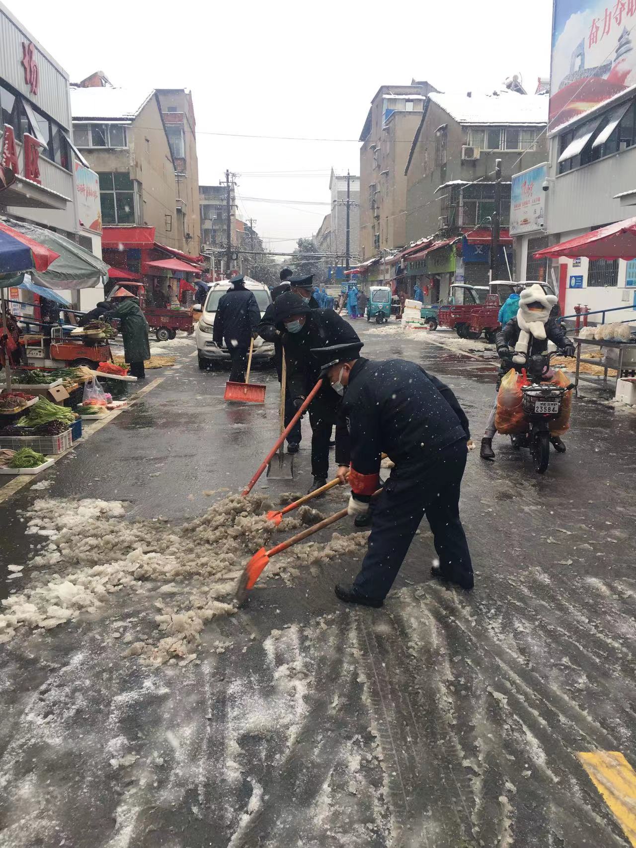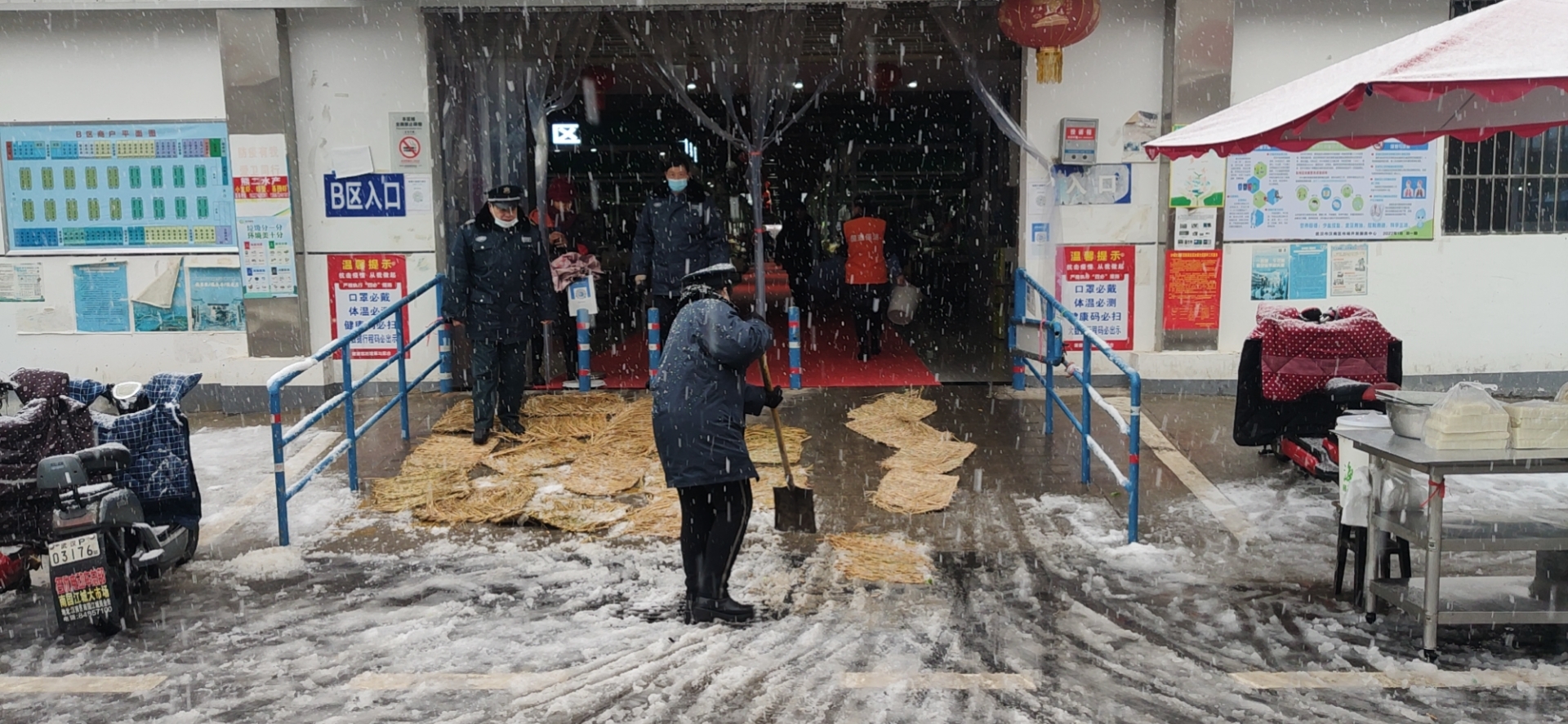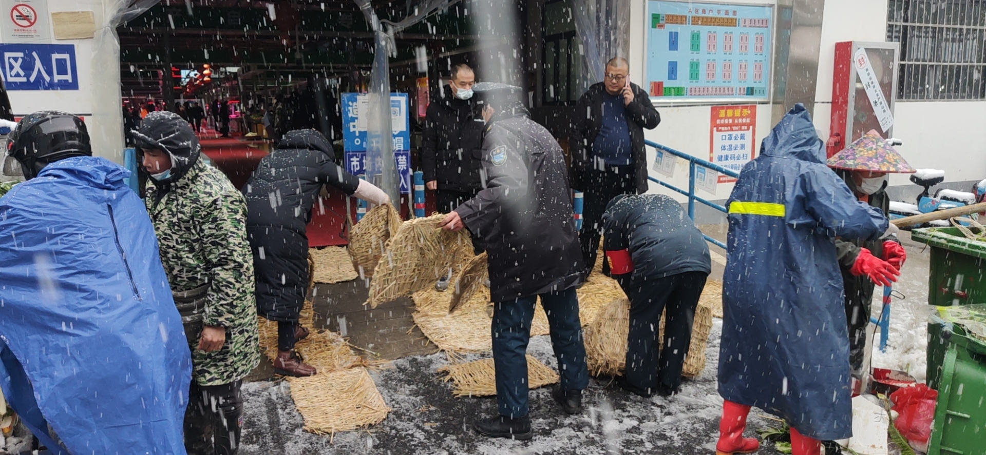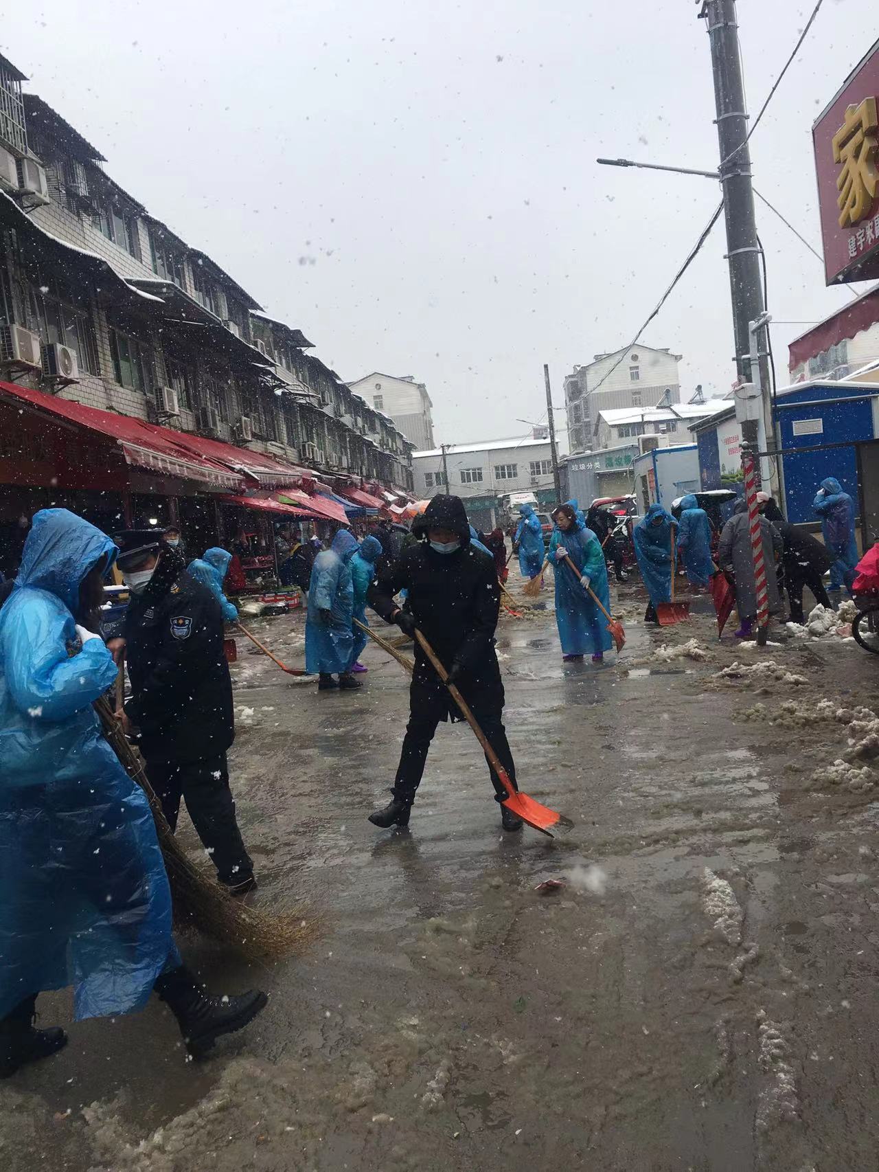 虽然室外温度很低,但大家劳动的热情不减,经过大家的努力奋战,纱帽市场的主要入口、主干道等地的积雪全部铲除,为市场周边居民及消费者开辟了一条洋溢着温情的通畅之路,保障了来往行人的安全。