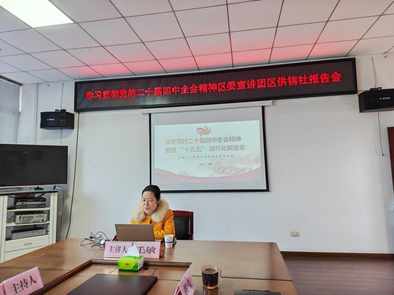 12月8日,学习贯彻党的二十届四中全会精神区委宣讲团区供销社报告会举行,区委宣讲团成员、市委党校经济教研部教授毛敏作宣讲报告。