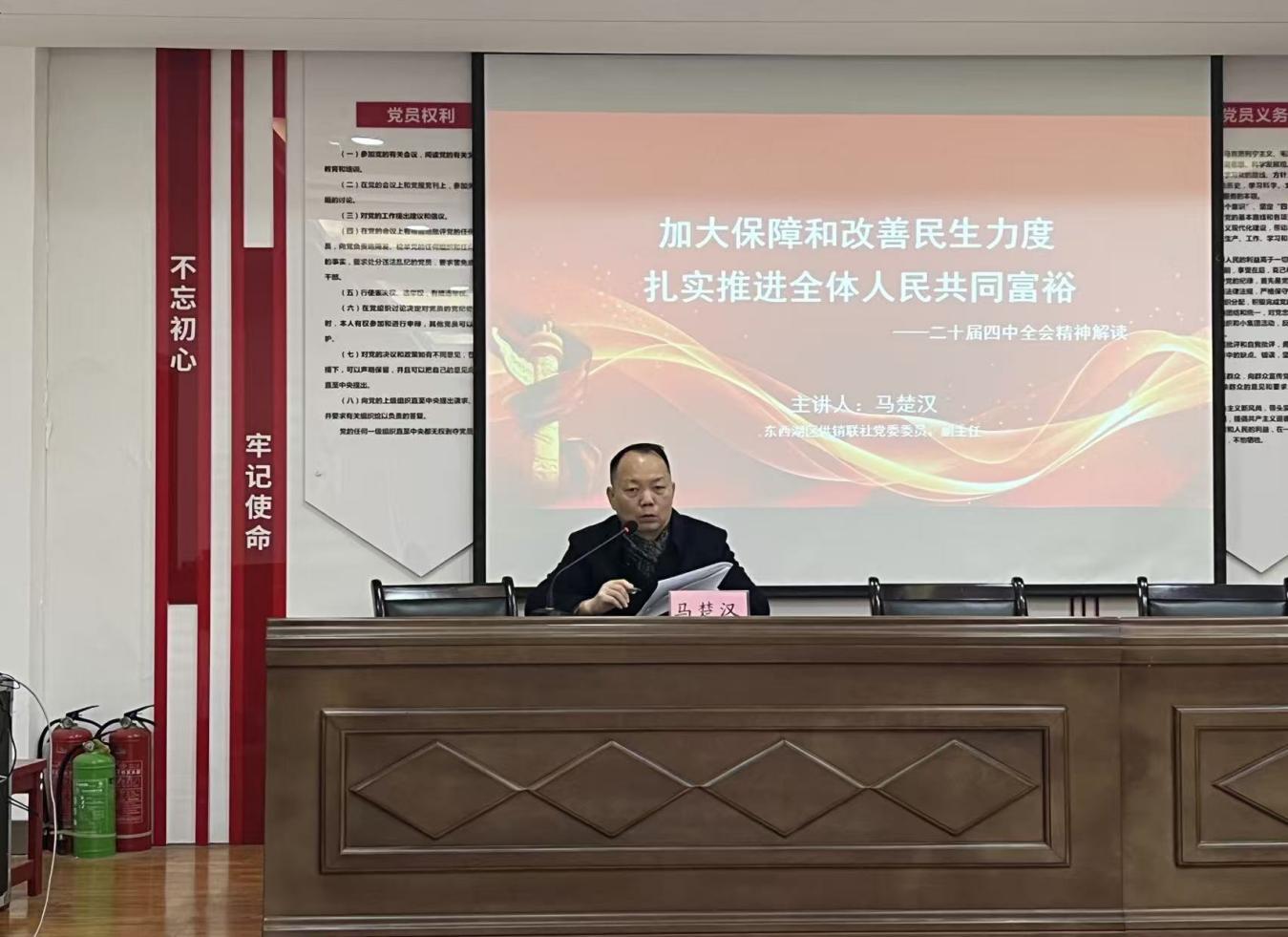 12月11日上午,区供销社党委委员、副主任马楚汉带队来到共建社区——区将军路街将花社区参加社区12月份联合支部主题党日活动,并为该社区全体党员讲专题党课。
