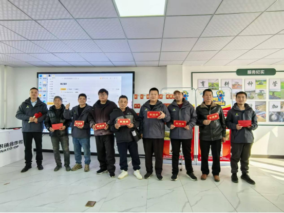 培训活动中,蔡供现代农服公司还对2025年在农业社会化服务工作中作出较大贡献的“优秀农机手”进行了表彰。其中,侏儒山街道檀山社区“95后”返乡青年王杰的农服案例受到广泛关注。王杰原是一名外出打工青年农民。2024年在蔡供现代农服公司的鼓励与指导下,他“返乡务农”学习无人机植保技术。从自家50亩责任田起步,短短一年多时间服务范围就拓展至周边村落,累计服务面积达2.2万亩次,成功地从行业新人成长为农事服务新秀。截止当前,蔡供现代农服公司已培育十多位像王杰这样的返乡“新农人”。
