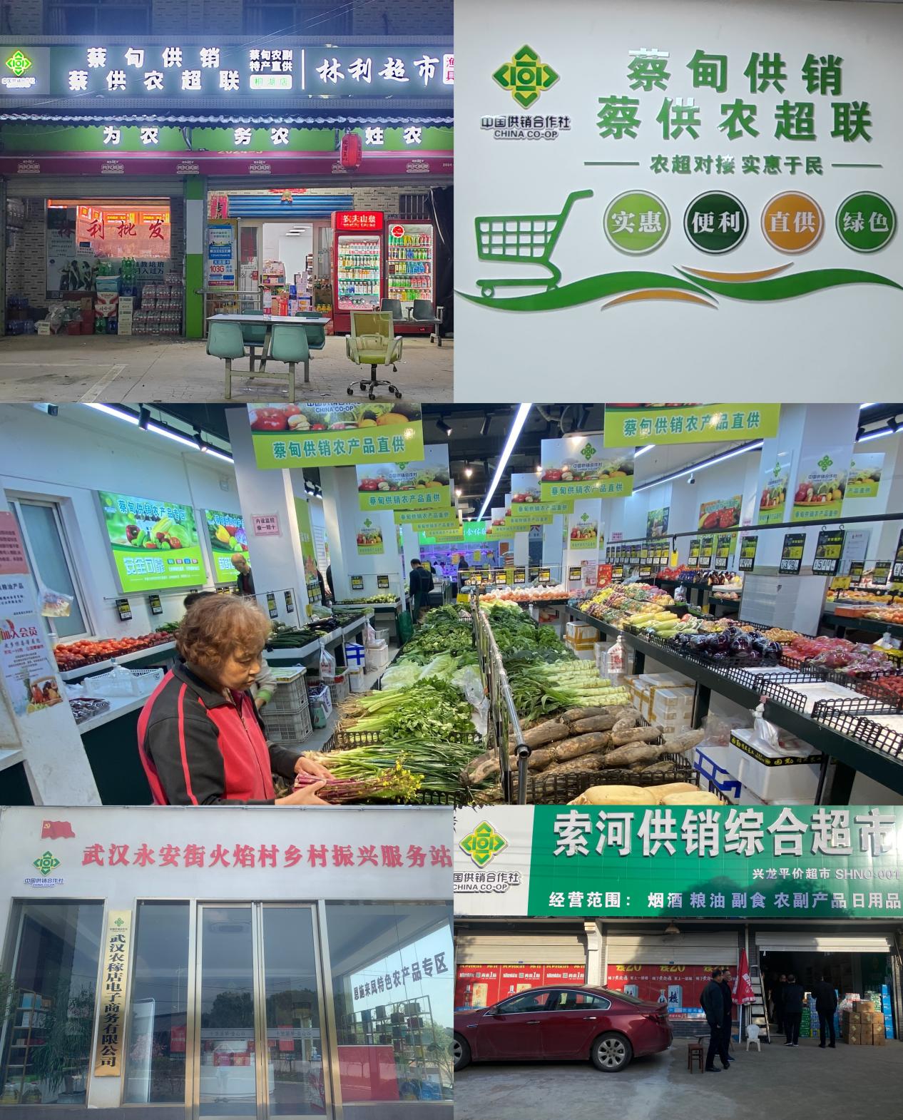 一是布局城乡营销网络。筹建“蔡供农超联”及各类供销直营店、连锁店计16家,让城市居民在家门口就能买到新鲜、优质、放心的蔡甸农产品;在街乡村湾新建标准化农村综合服务部、乡村振兴服务站10家,为农户提供农产品收购、代销、存储、物流配送等一站式服务,让农户足不出村就能完成农产品寄、运、邮、销业务,解决了“运输难、储存难、销售难”的难题。