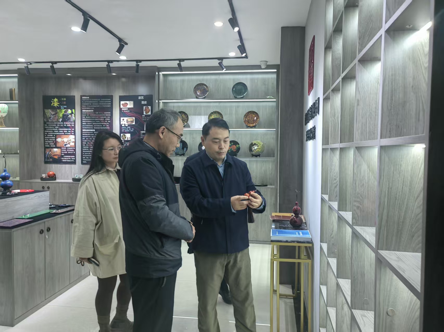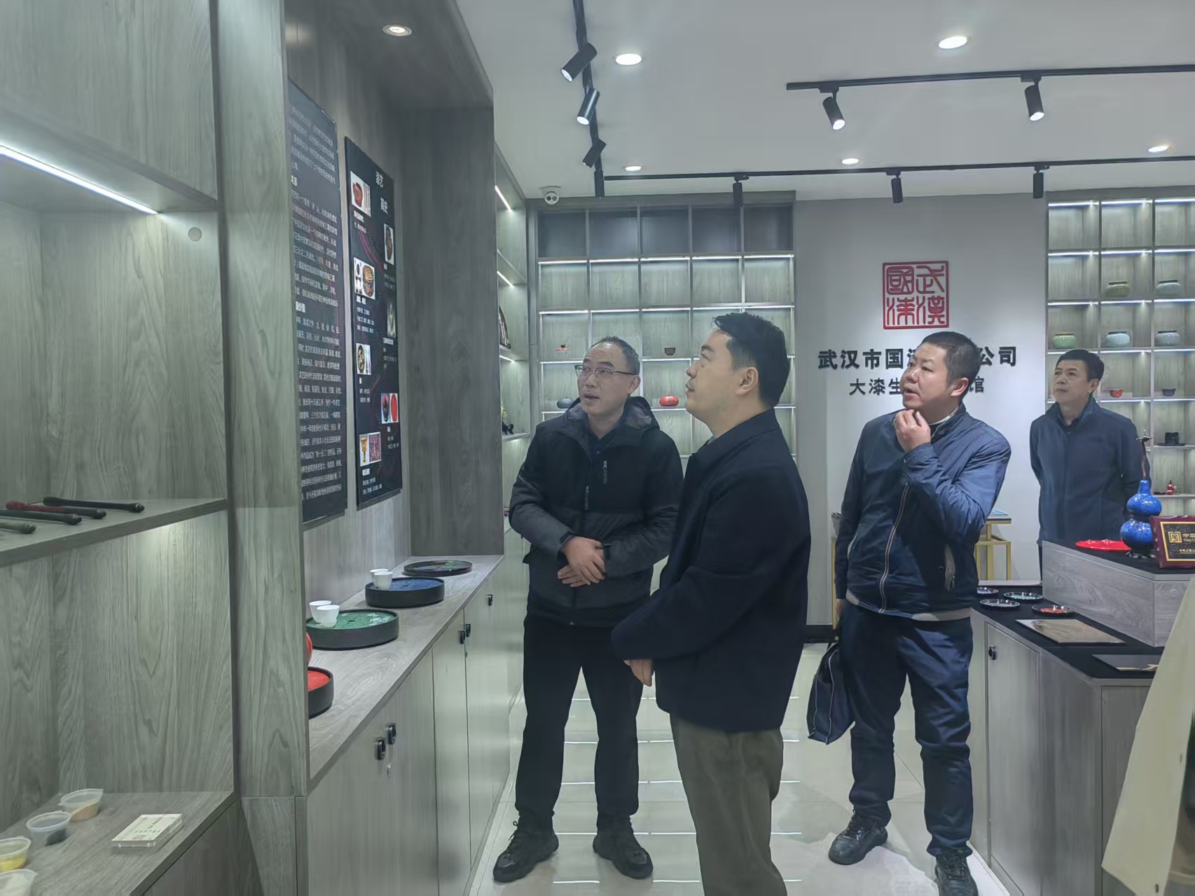 2025年11月24日,江岸区人民政府副区长李绪杰一行赴武汉市国漆有限公司大漆生活体验馆,调研企业经营发展情况。公司经理龚永涛及相关负责人陪同。