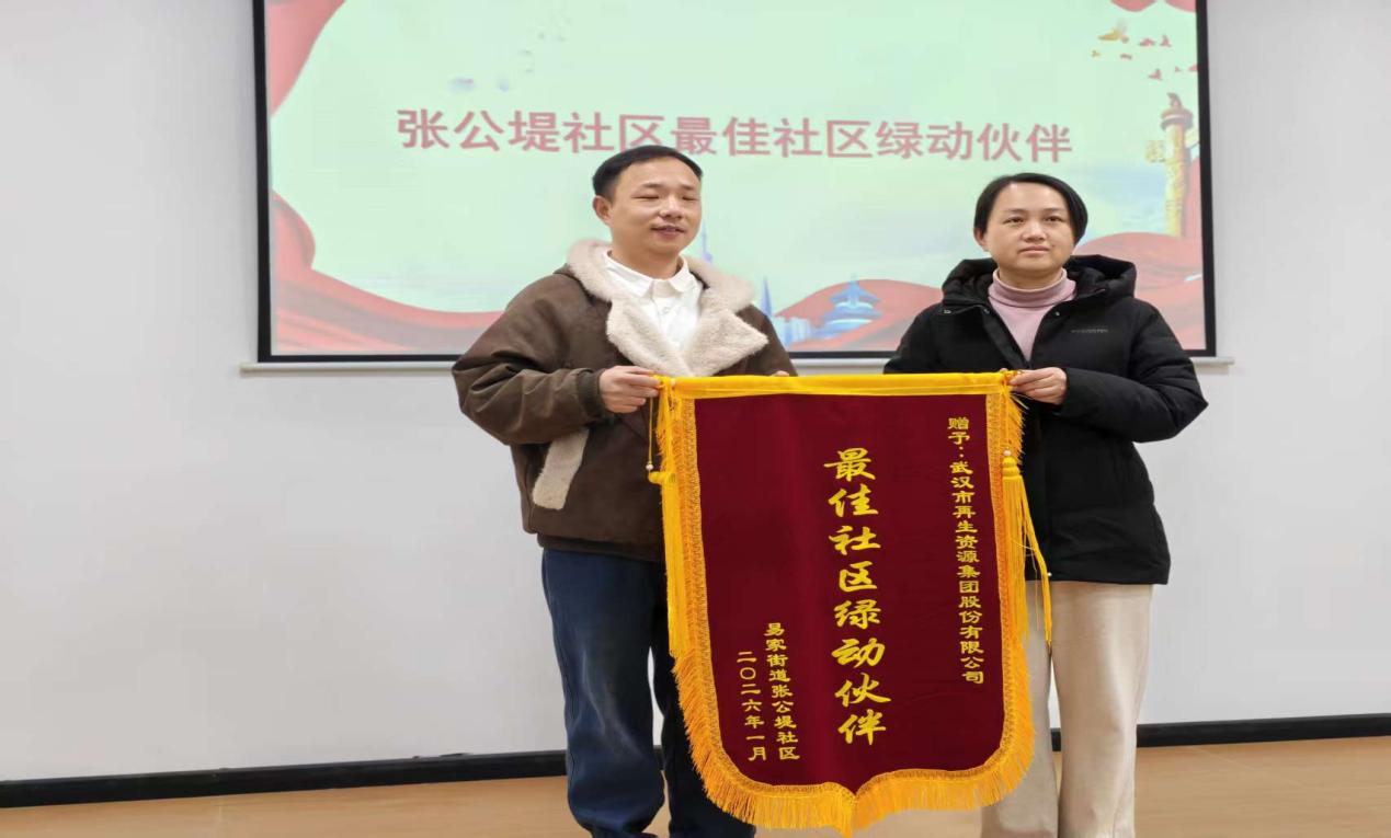 2026年1月29日上午,易家街道张公堤社区在党群服务中心举办2025年度志愿者表彰大会,对社区环保与志愿服务中表现突出的共建企业、个人予以表彰。武汉市再生资源集团股份有限公司因长期助力社区绿色行动获评“最佳社区绿动伙伴”。