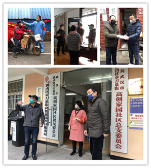用心用情真帮,连续慰问暖社区。近日,为积极响应市社党委对疫情防控重要指示精神和履行国企社会责任担当,再生资源集团公司党委书记、董事长徐绍雄,集团公司总经理何仁华连续六天奔赴洪山区卓刀泉街高创家园社区和长职苑社区一线,先后送党员上岗战“疫”、深入社区走访和送急需防疫物资,增添两社区战“疫”力量,帮助社区抗击疫情尽一份微薄之力。