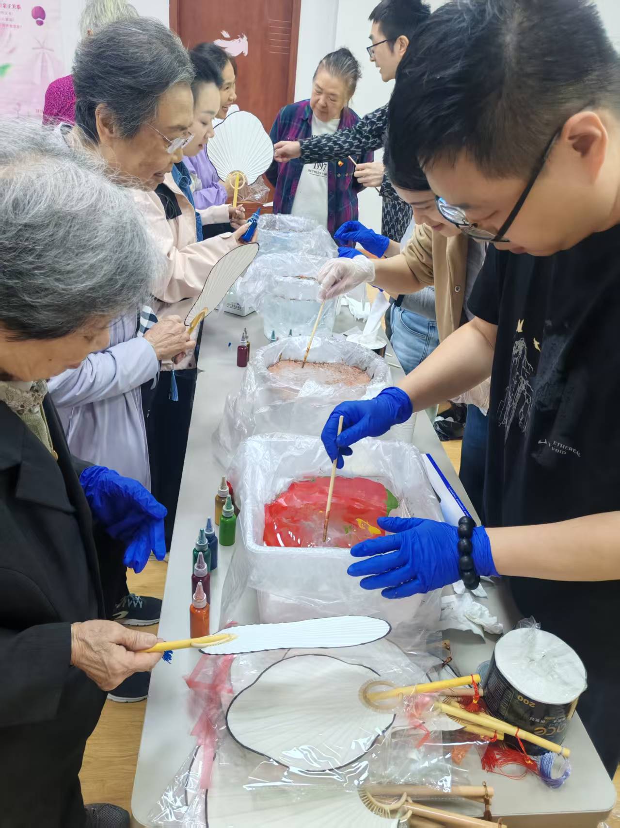 随后,活动转场至同庆阁社区党群服务中心。体验环节中,老党员们在国漆公司工作人员的指导下制作漂流漆扇。大家发现,尽管使用相同的材料,每一把扇面的纹理却各不相同,正如每位党员在各自岗位上的奋斗,而所有作品又都闪耀着大漆温润而坚韧的共同底色,这正象征着在党组织引领下凝聚起的共同理想。这场动手实践,不仅加深了大家对漆艺美学的理解,也进一步强化了党员的身份认同与组织凝聚力。