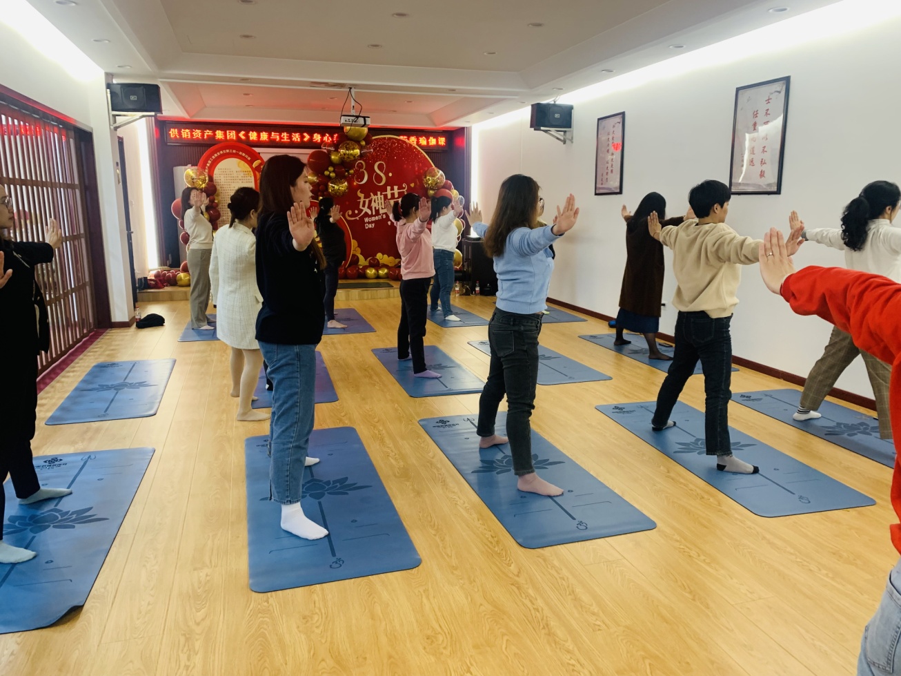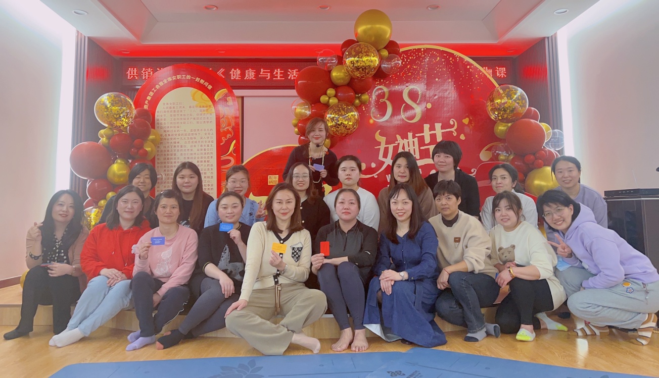 交流活动结束后,女职工们换上舒适的运动装满怀热情体验芳香瑜伽课程。从冥想、呼吸到肩颈舒展,大家按照瑜伽老师的指导进行身心放松、舒展肩颈,举手投足间,洋溢着女性同胞的青春和热情,尽情展示着“撑起半边天”的知性优雅。