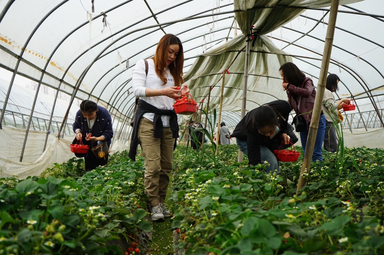 活动当日,山绿集团党委委员、副总会计师郑峰代表山绿集团党委向全体女职工表达了节日的祝愿,并对女职工们在公司发展中所做出的贡献给予了肯定。随后大家结伴同行,在石榴红村粉墙黛瓦、层楼叠榭的古朴民居之间,在春天的田野里,实地感受乡村振兴的优秀成果。活动的最后,女职工们前往石榴红村草莓种植基地采摘草莓,大家互帮互助,气氛融洽。草莓大棚里红绿交映,一片欢声笑语,每个人都收获颇丰。